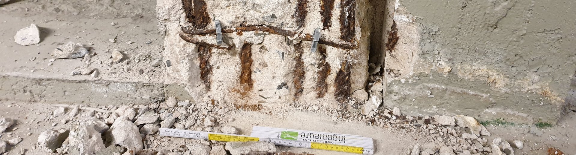 - Zustandserfassung und Zustandsbewertung bei Gebäuden im Bestand (Geometrie, Betonklassen, Bewehrung, Schäden, Korrosion, Bauwerksabdichtung etc.)